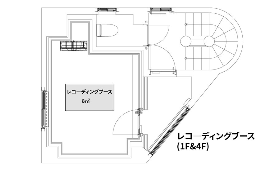 コントロールルーム 12㎡ レコ―ディングブース 8~10㎡ |